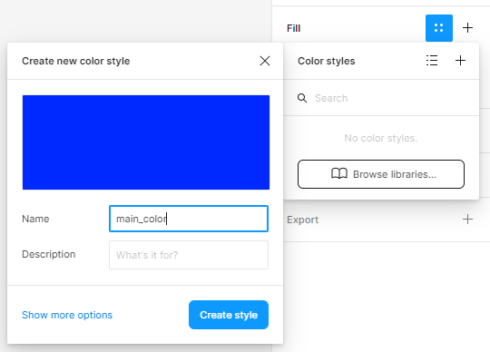 도형의 색상을 채우는 곳. 자주 사용하는 색상을 Color styles로 지정해놓을 수 있다. (수정도 편함)